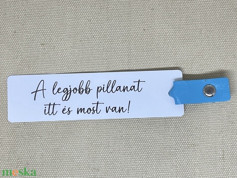 Motivációs fém könyvjelző - valódi bőr díszítéssel - A legjobb pillanat