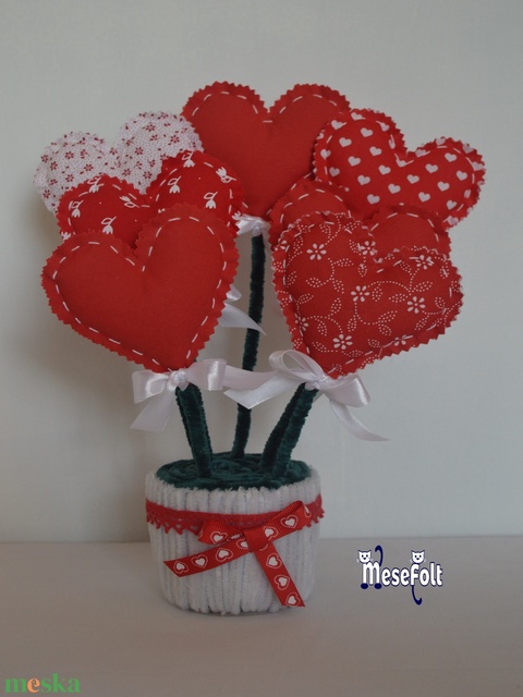 - Anyaga: műanyag cserép, hungarocell, dekorkavics, zsenilia drót, zsenilia kötőfonal, szatén szalag, 100% pamutvászon, vatelin, csipke, drót