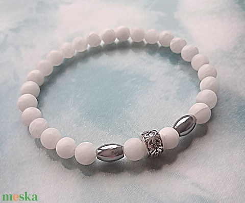 - Anyaga: festett jáde, nemesacél díszítő elemek, damilgumi