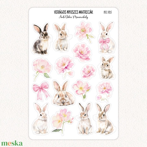 Virágos nyuszis matricák No.185