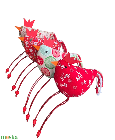 Lakásdekor - húsvéti tyúkok textilből - piros árnyalatok