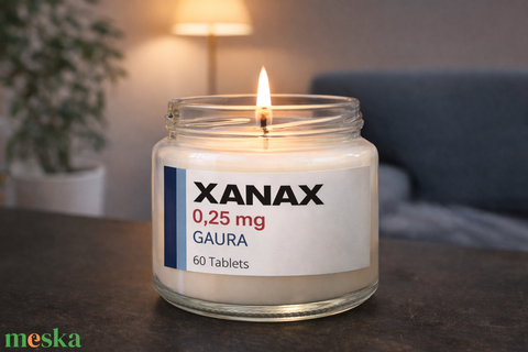 MOTIVÁCIÓS „XANAX” illatgyertya – 0,25 mg nyugalom madagaszkári vaníliával