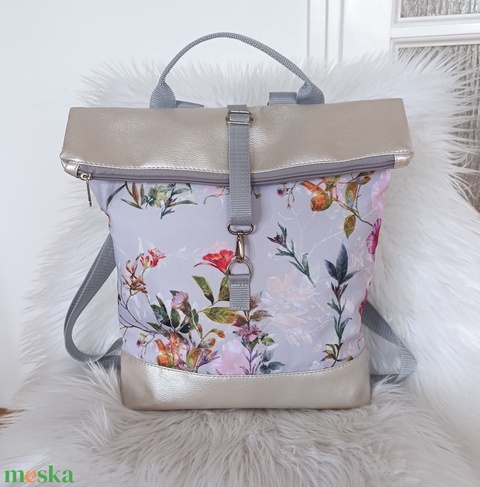 - Anyaga: műbőr, pamutvászon, húzózár, heveder, heveder kellék, vízlepergető anyag