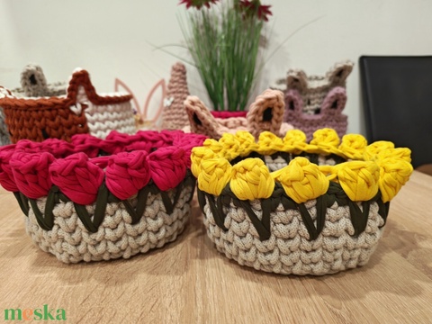 Tulipános horgolt tároló