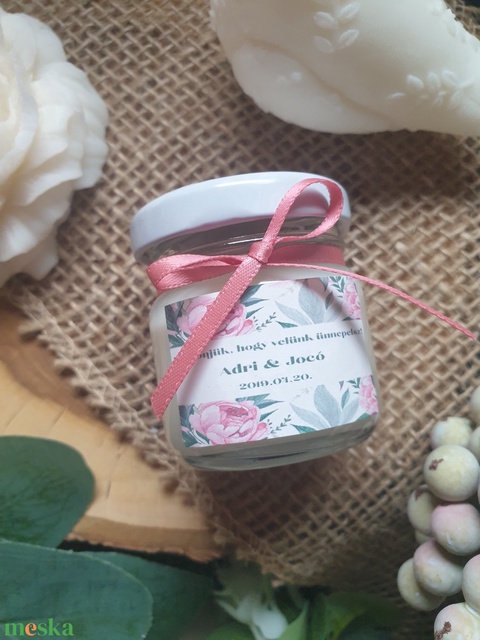 Köszönetajándék,szójaviasz gyertya,esküvő ültető, bazsarózsa illattal, 42ml