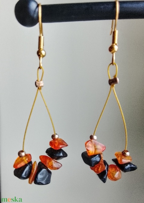 Fülbevaló borostyán kövecskékkel