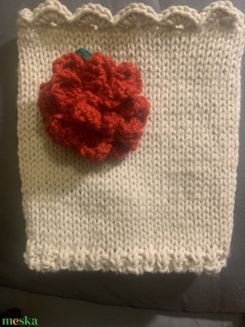 Táska. Beige kötött táska piros virágokkal díszítve eladó