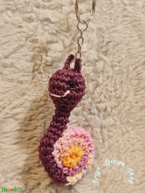 Kézműves horgolt kabalafigurás kulcstartó - Mini csiga (Matild)