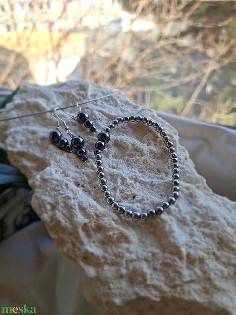 Hematit ékszerszett (karkötő, fülbevaló, medál) – Hófény