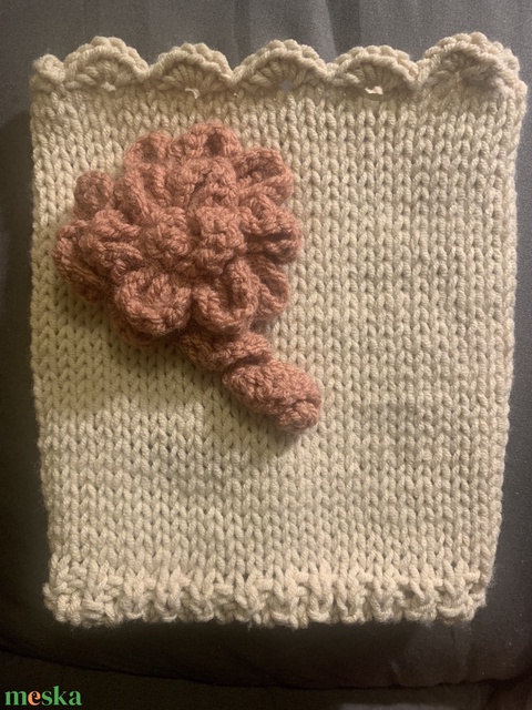 Táska. Beige kötött táska púder színű virágokkal díszítve eladó