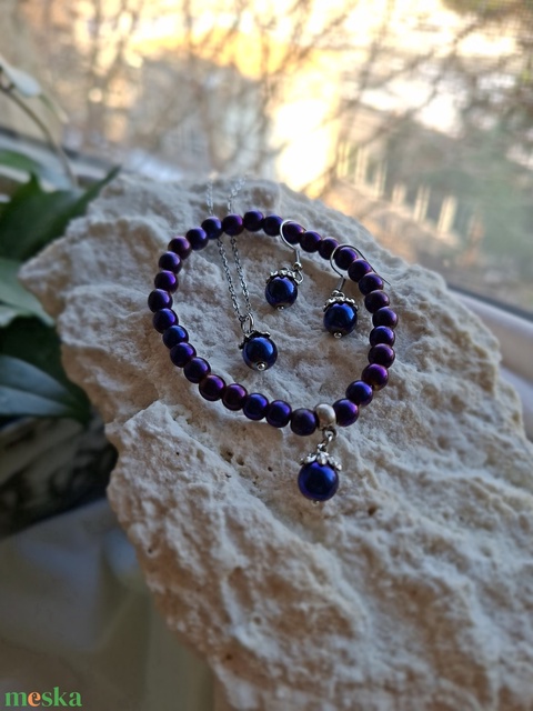 Hematit ékszerszett (karkötő, fülbevaló, medál) – Lila Csend