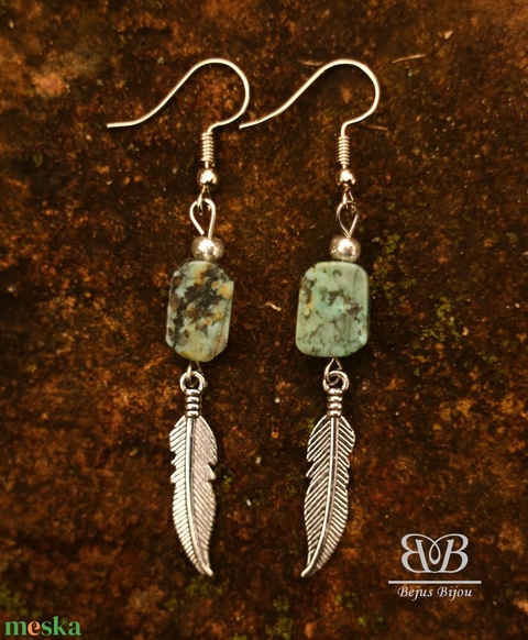 Türkiz madártoll fülbevaló