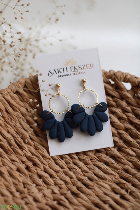 Kék függő fülbevaló karikával
