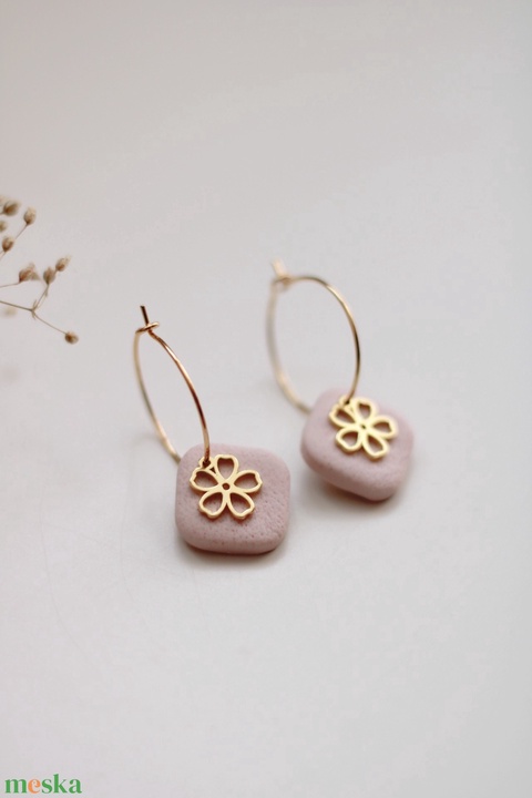 Bézs virágos karika fülbevaló