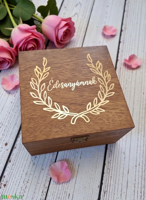 Szülőköszöntő ajándék ládikó - selyem virágokkal