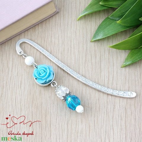 Világoskék rózsás könyvjelző - Anyák napi apró figyelmesség #13