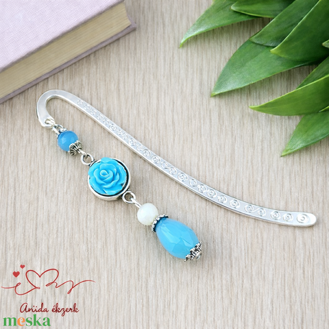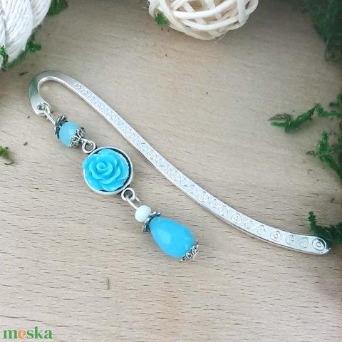 Világoskék rózsás könyvjelző - Anyák napi apró figyelmesség #14