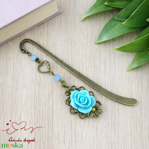 Világoskék rózsás könyvjelző - Anyák napi apró figyelmesség #15
