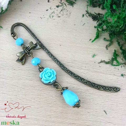 Világoskék rózsás könyvjelző - Anyák napi apró figyelmesség #7