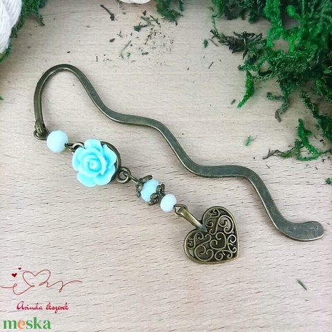Világoskék rózsás könyvjelző - Anyák napi apró figyelmesség #8