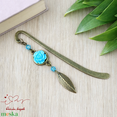 Világoskék rózsás könyvjelző - Anyák napi apró figyelmesség #10