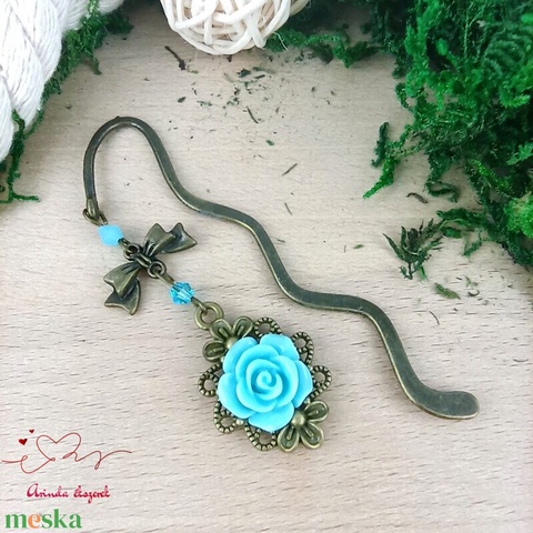 Világoskék rózsás könyvjelző - Anyák napi apró figyelmesség #3