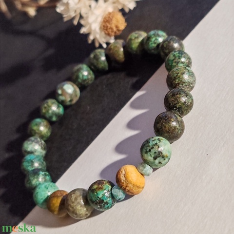 - Anyaga: gumiszál, palo santo, jáde, afrikai türkiz