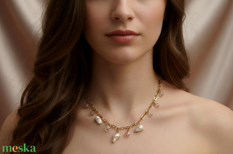 Barokk Gyöngyös és Kristályos Nemesacél Nyaklánc (70 cm) – Elegancia és Variálhatóság