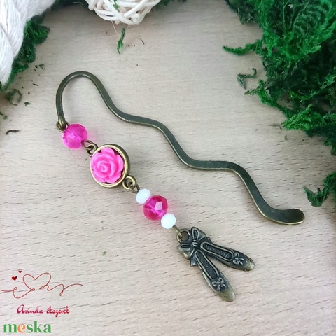 Pink rózsás könyvjelző - Anyák napi apró figyelmesség #90