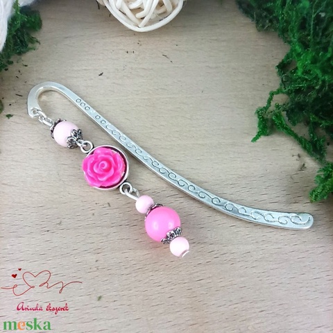 Pink rózsás könyvjelző - Anyák napi apró figyelmesség #85
