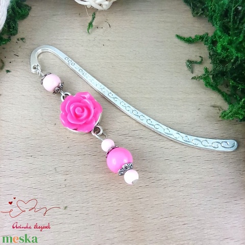 Pink rózsás könyvjelző - Anyák napi apró figyelmesség #91