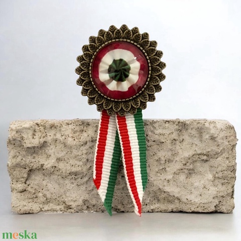 Üveglencsés kokárda március 15 virág bronz kisebb méret 5730281