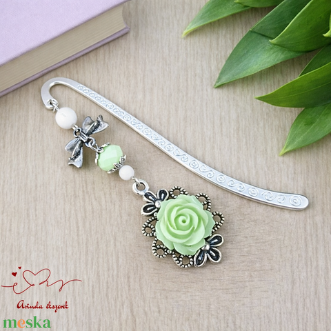 Menta rózsás könyvjelző - Anyák napi apró figyelmesség #73