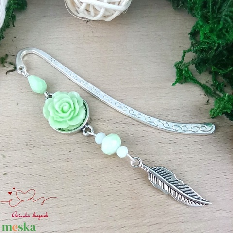 Menta rózsás könyvjelző - Anyák napi apró figyelmesség #65