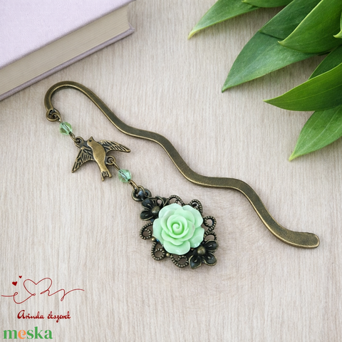 Menta rózsás könyvjelző - Anyák napi apró figyelmesség #67