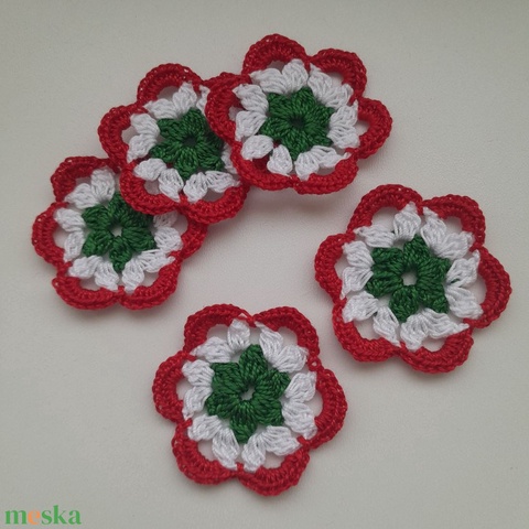 Nemzeti színű horgolt dísz, kokárda 7 db / csomag