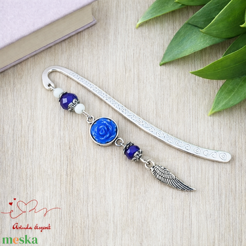 Sötétkék rózsás könyvjelző - Anyák napi apró figyelmesség #77