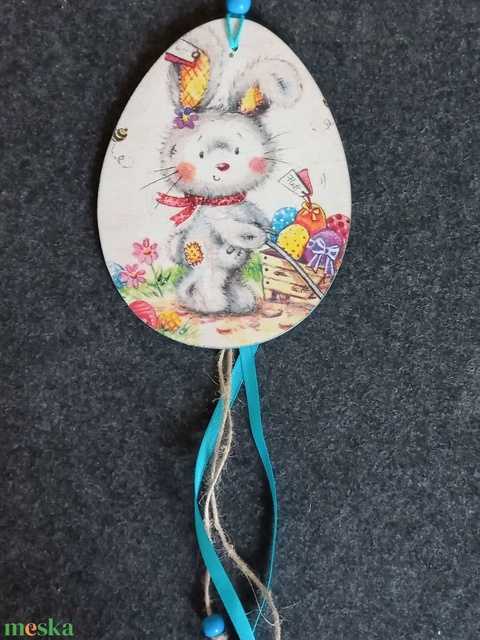 Húsvéti fa dísz szalagokkal, madzaggal, fagolyókkal.