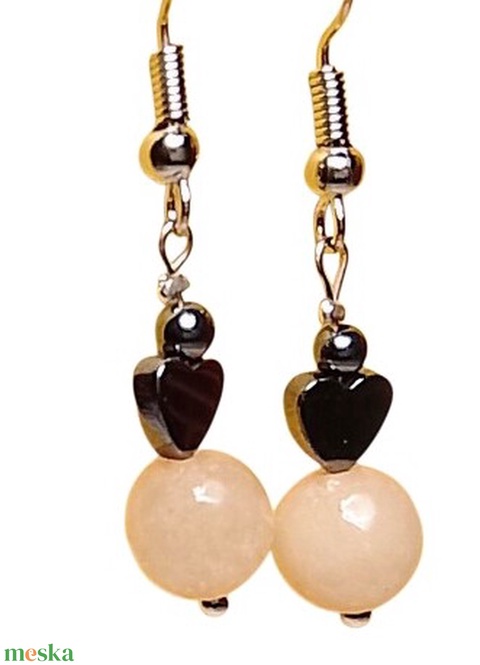 Fülbevaló rózsaszín ásvány és hematit gyöngyökkel