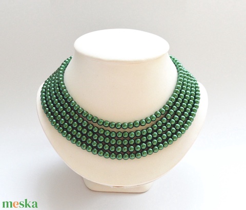 5 soros sötétzöld kaláris - 6 mm-es üvegtekla gyöngyből