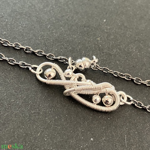 ezüstözött rézdrót, lánc, fémgyöngy, mágneszár