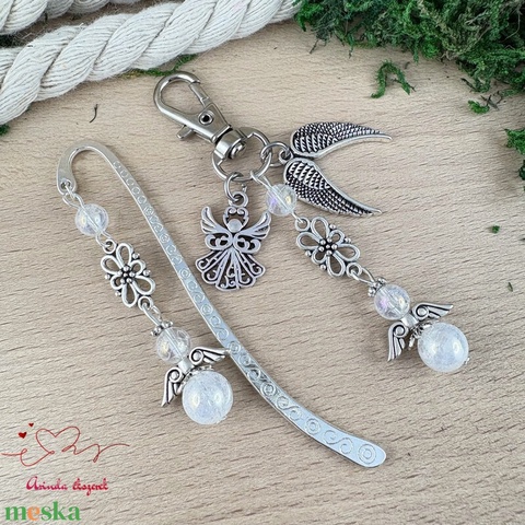 Roppantott aurakvarc angyal könyvjelző és kulcstartó szett – ásvány ajándék