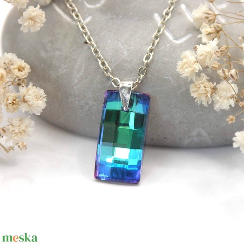 Téglalap formájú türkizes lilás-kék Aurora kristály ezüst láncon - Városlakó