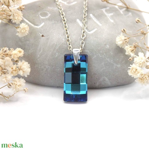 Téglalap formájú óceáni–zöldes kék Aurora kristály ezüst láncon - Prizma