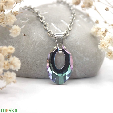 Légies, szivárványosan irizáló, ovális formájú Aurora kristály ezüst láncon - Eclipse