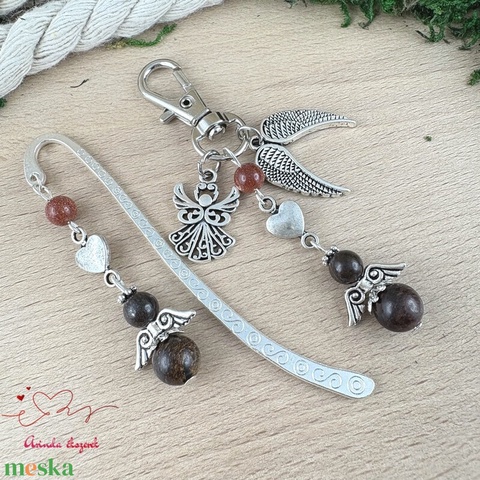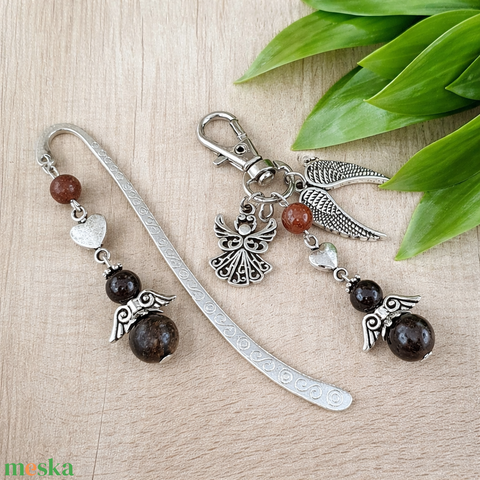 • Könyvjelző, 6 és 8 mm-es bronzit ásványgyöngyből készült angyalkával – tökéletes társ az elmélyült, nyugodt olvasáshoz