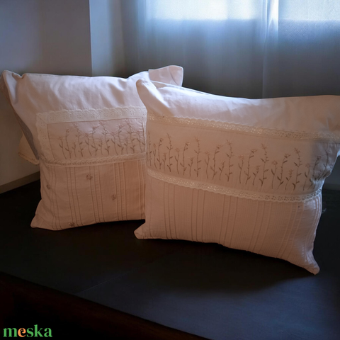 Romantikus rózsaszín díszpárna huzat hímzéssel szettben