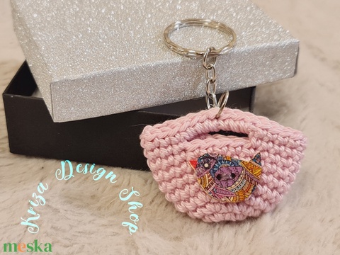 Kézműves horgolt kulcstartó - Shopping bag (Lila madárkás)