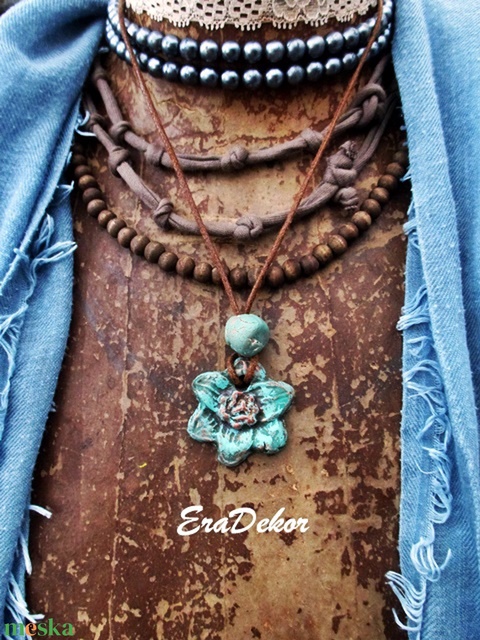 - Anyaga: vízbázisú akrilfestékek, vízbázisú lakk, , zsinór, bőr, gyöngy, kerámia, boho, rusztikus