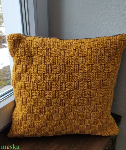 Kézzel horgolt díszpárna huzat mustársárga színben